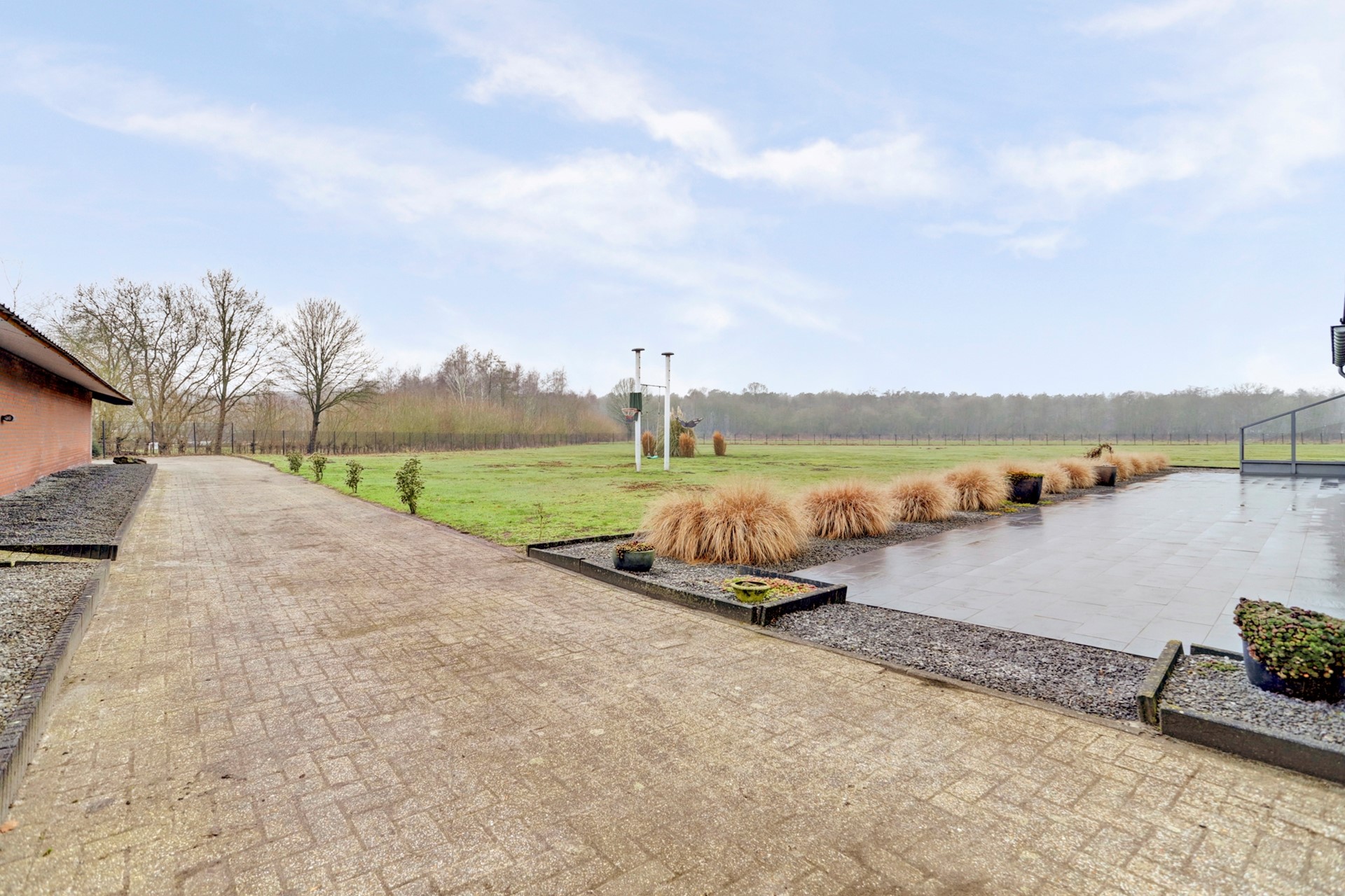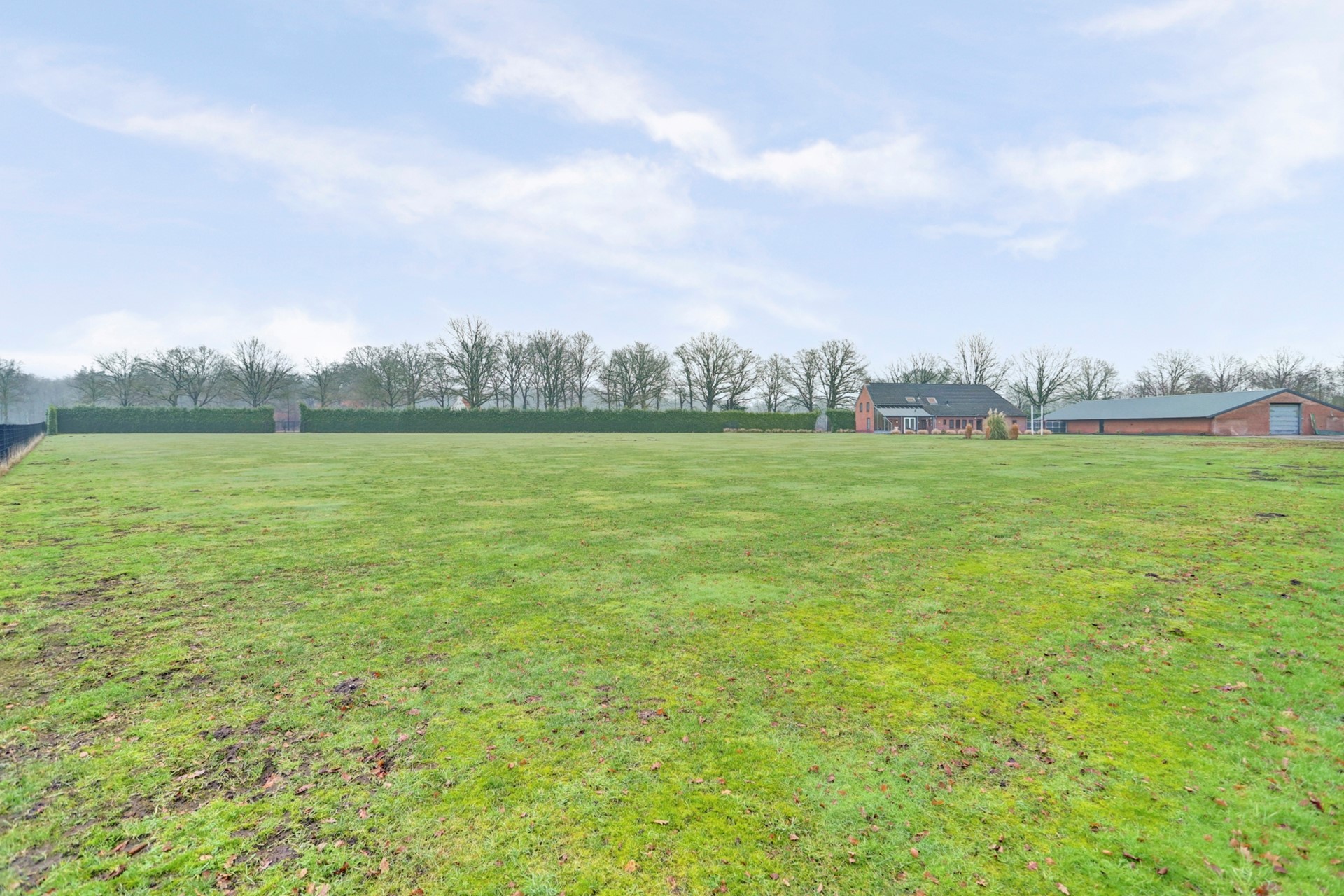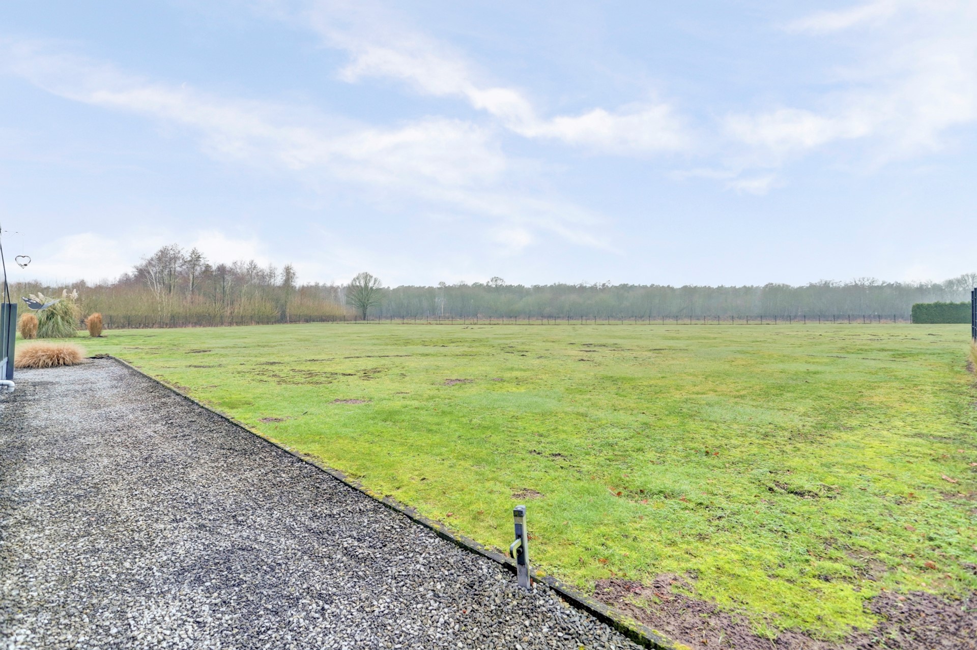 In het begin spraken we al over het ruime perceel van ruim 12.500 m². Dit perceel is is werkelijk fenomenaal en is haast geen achtertuin meer te noemen, je kijkt hier weg uit over een uitgestrekt eigen weiland, een uitzicht waar je nooit op uitgekeken raakt. Het perceel is rondom voorzien van hekwerk en achter het perceel gelegen is nog een mooi natuurgebied aanwezig. De ruimte, de vrijheid en de stilte maken dit tot een buitenplek van formaat.
