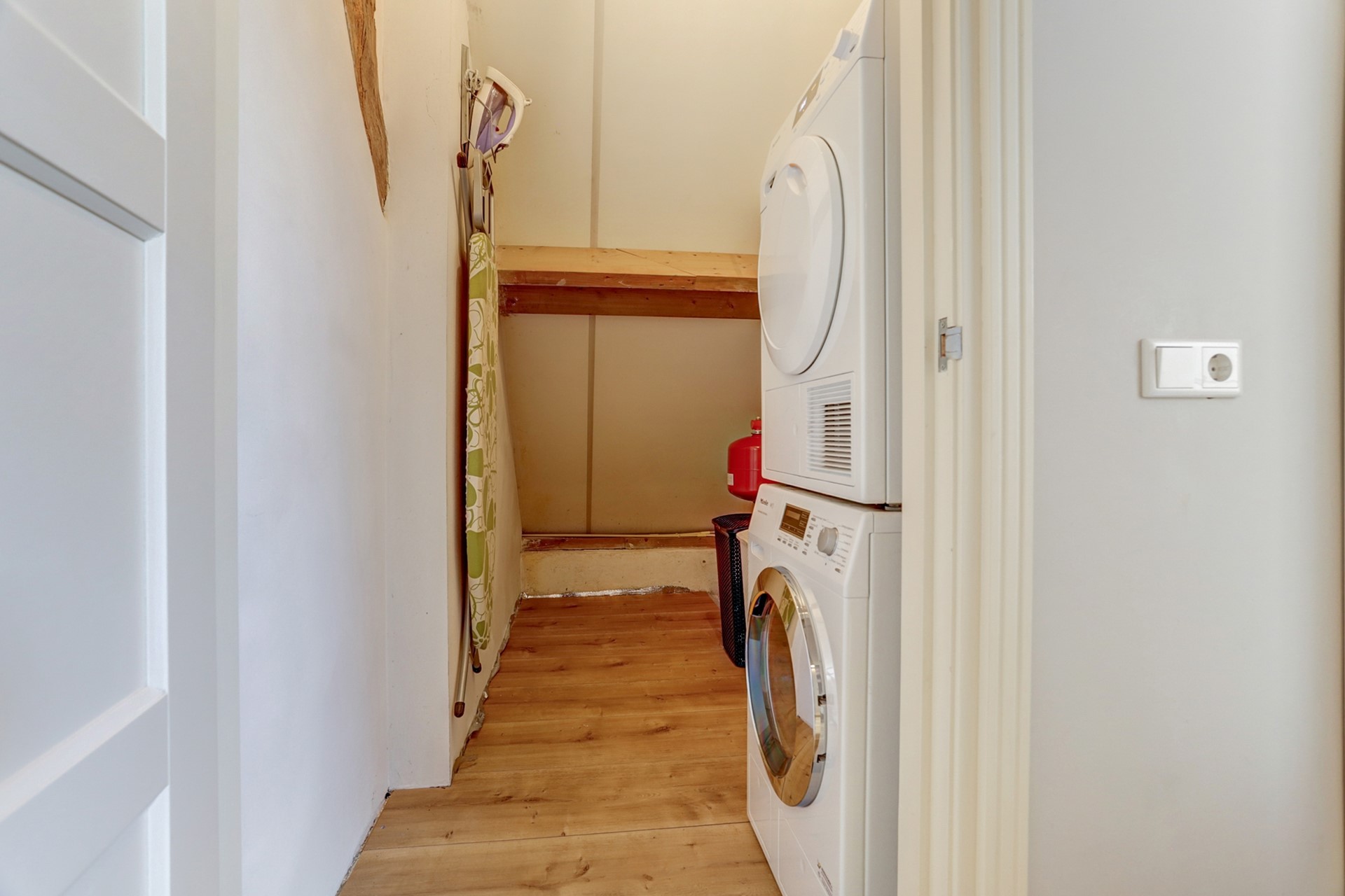 De wasruimte is een fijne en praktische ruimte welke voorzien is van een laminaatvloer en strakke wandafwerking. Hier vind je de witgoedaansluitingen en de cv-ketel (Remeha 2012) en voldoende opbergruimte.