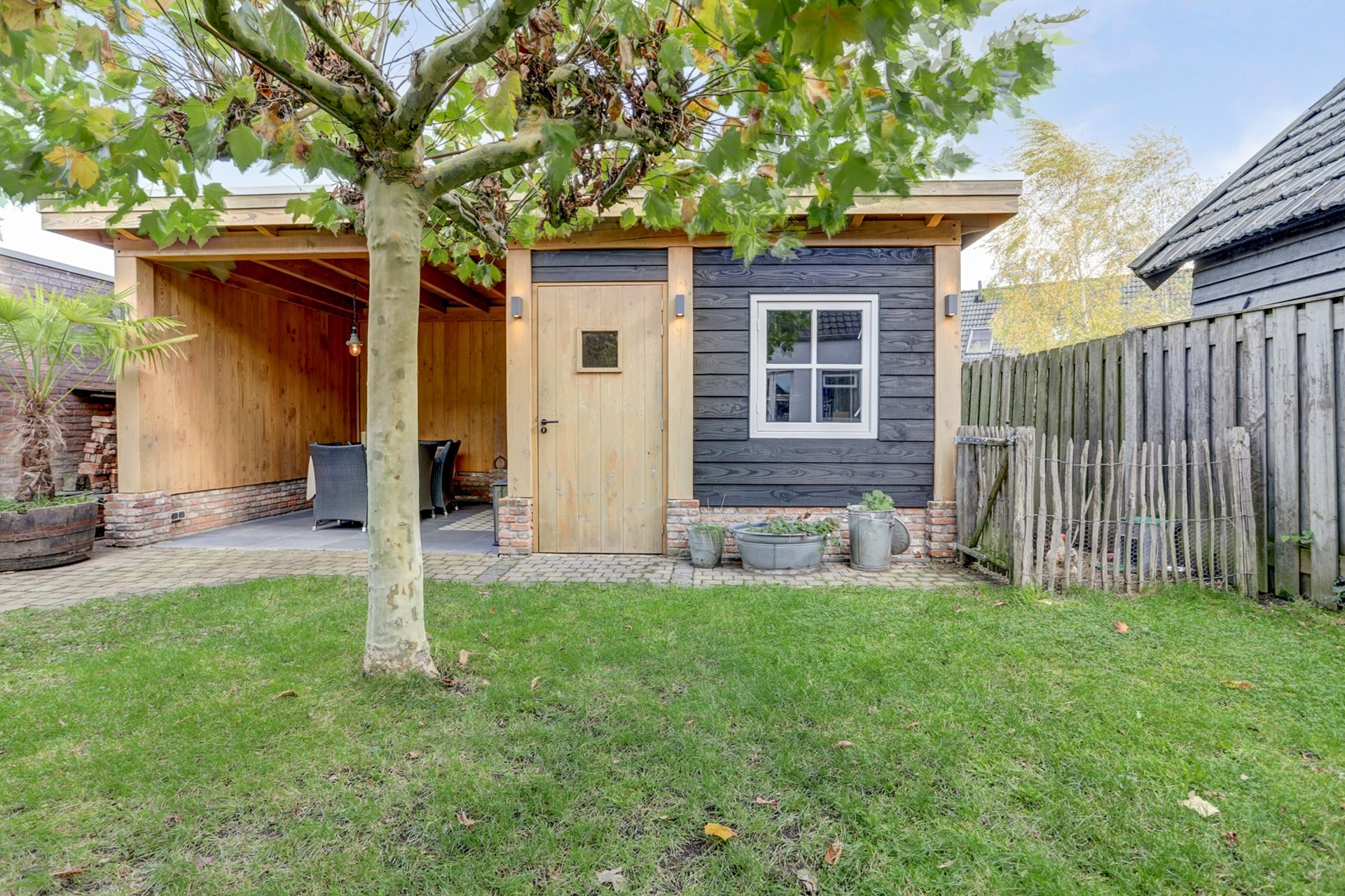 Achterin staat de berging waarvan het metselwerk en het gepotdekselde hout meteen het landelijke karakter van de tuin benadrukken. De goed geïsoleerde berging met volop opbergruimte kan perfect dienen als hobby- of klusruimte. Naast deze ruimte bevindt zich een praktische geïsoleerde overkapping, dé plek voor gezellige momenten met vrienden en familie. Hier kun je lekker borrelen of dineren terwijl de kinderen lekker spelen op het grasveld.