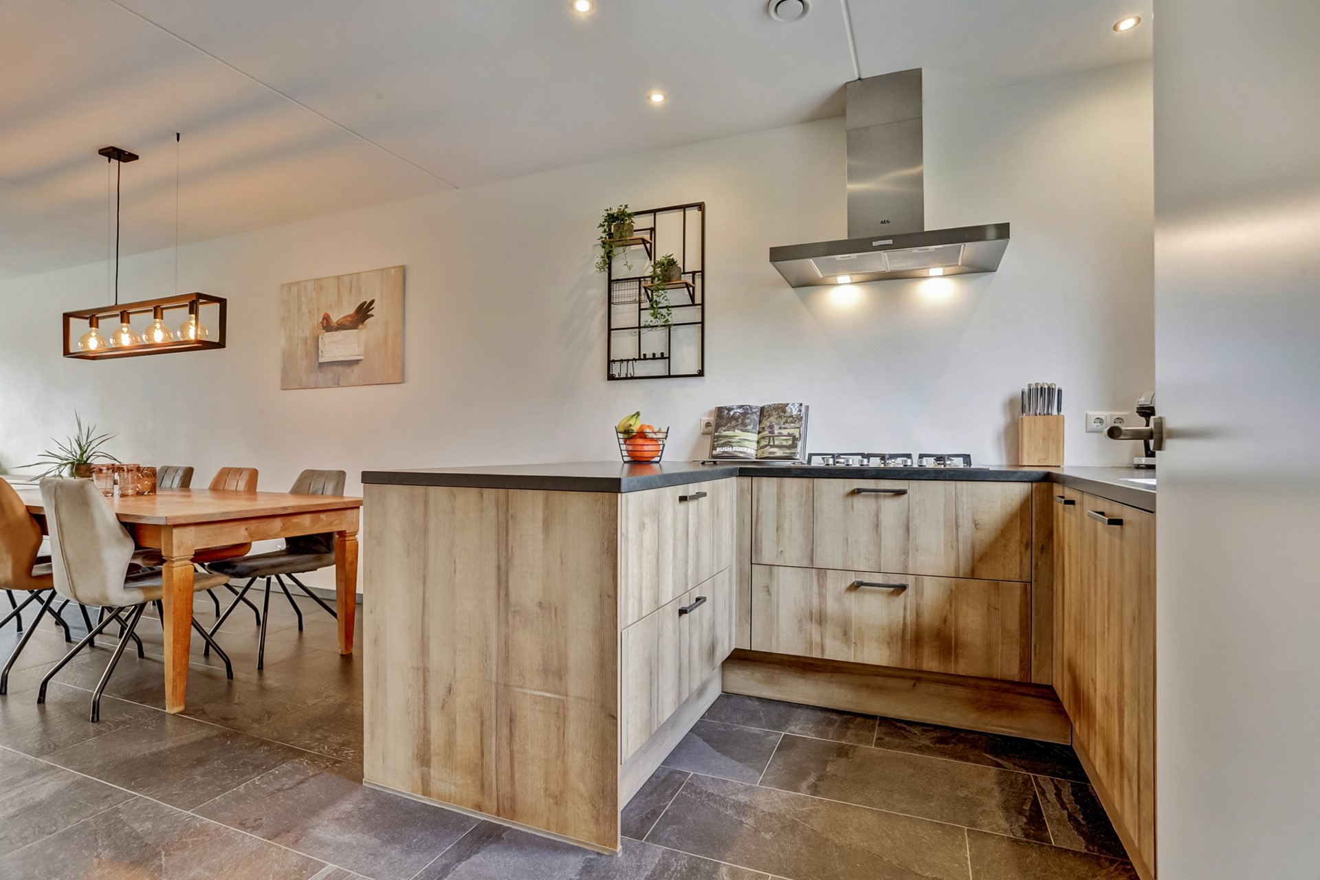 De keuken is praktisch ingedeeld en voorzien van alle gemakken: een 5-pits gaskookplaat met wokbrander, afzuigkap, combi-oven, koelkast en vaatwasser. Alles wat je nodig hebt voor het bereiden van een snelle lunch of een uitgebreid diner is hier binnen handbereik.