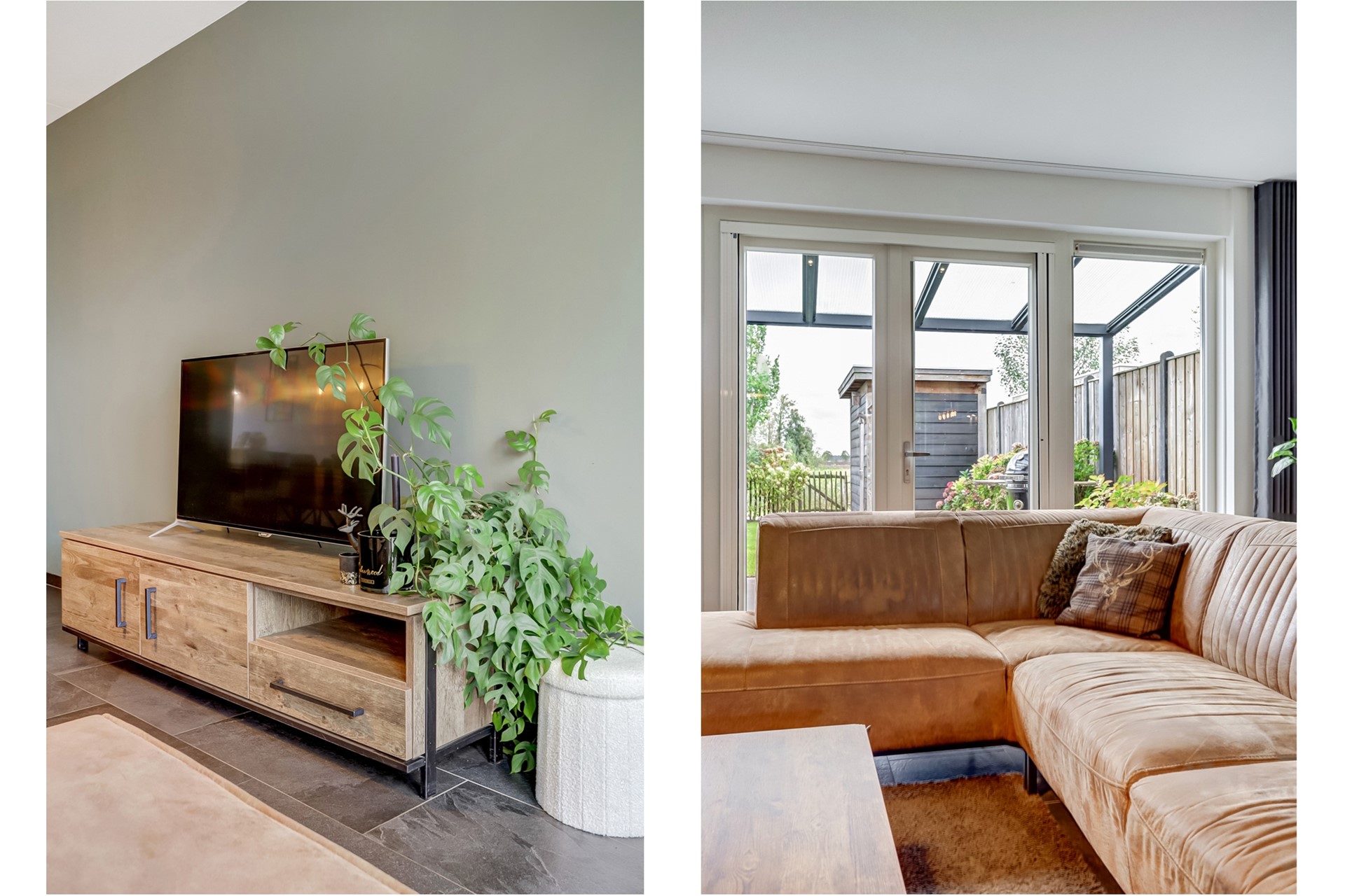 Aan de achterzijde ligt de uitgebouwde sfeervolle woonkamer, een heerlijke plek om echt thuis te komen.
