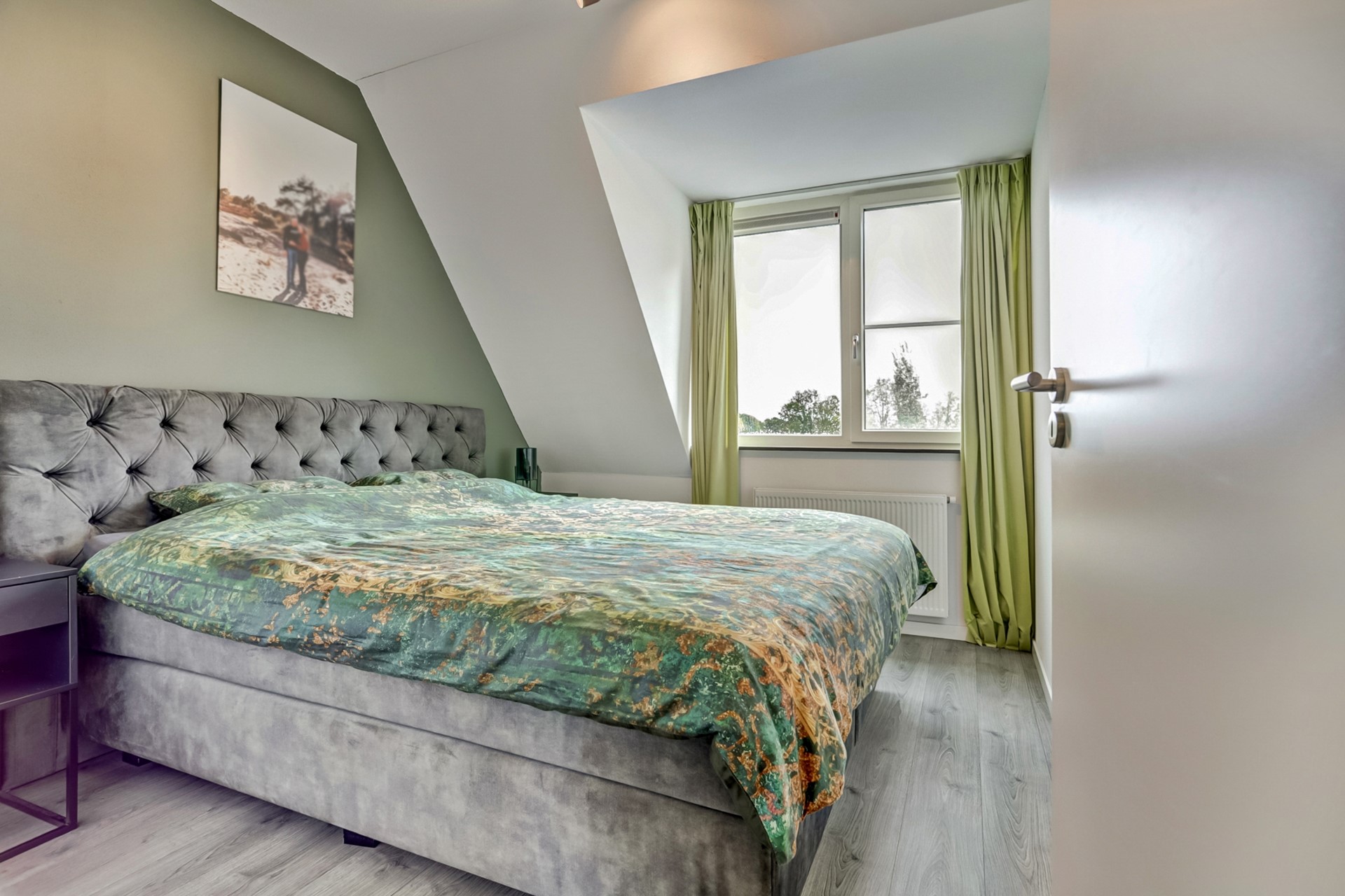 De master bedroom ligt aan de achterzijde van de woning en is royaal van opzet. Dankzij het dakkapel geniet je hier van een adembenemend uitzicht over de landerijen. Het dakkapel is ook voorzien van horren en de kamer biedt volop ruimte om een tweepersoonsbed en een kledingkast te plaatsen.