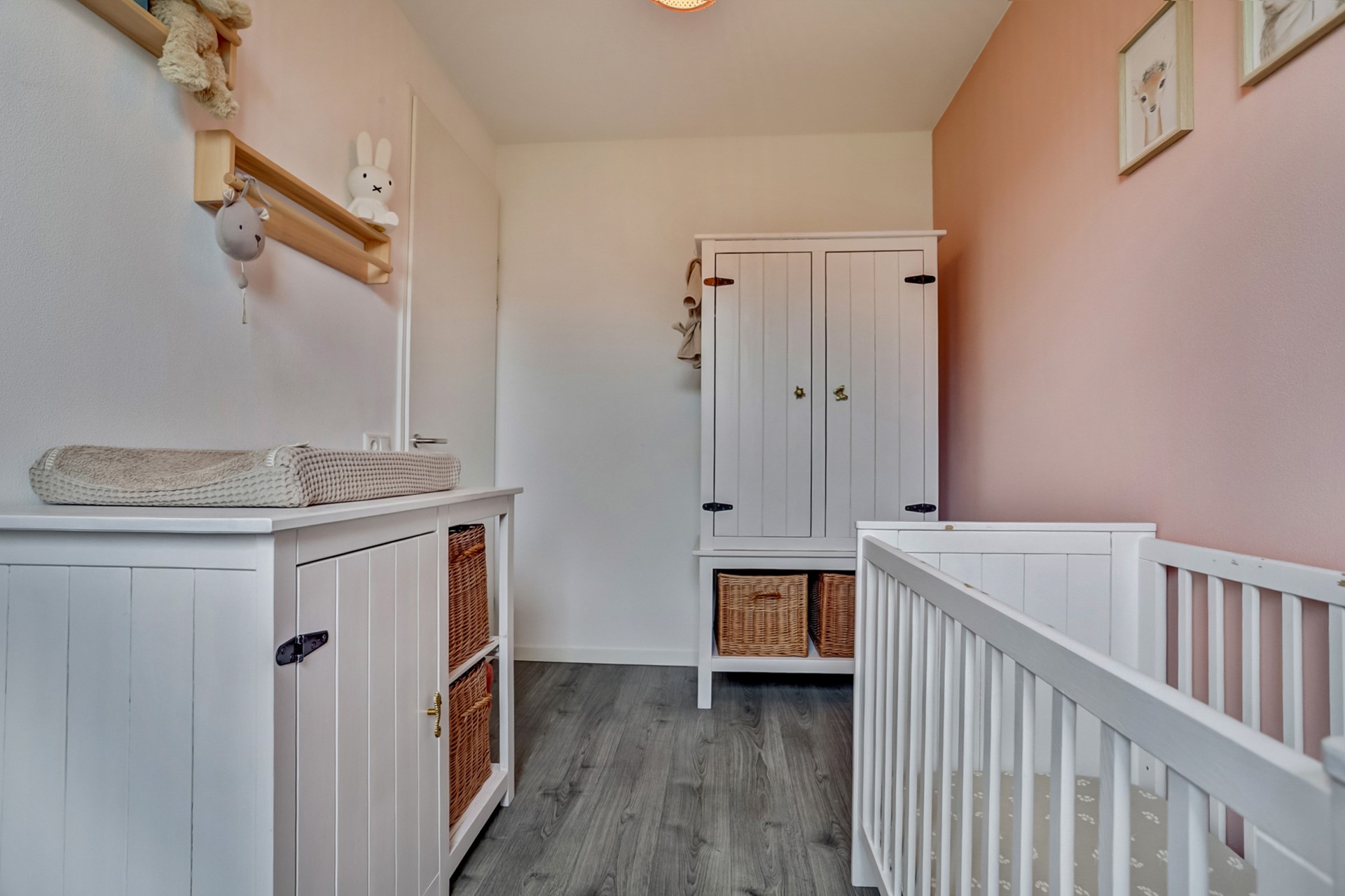 Naast de master bedroom bevindt zich nog een kleine kamer aan de achterzijde, welke nu in gebruik genomen wordt als kledingkamer, maar ook ideaal is als kinderkamer of kantoorruimte. Aan de voorzijde van de woning vind je de derde slaapkamer, een fijne en lichte kamer die uitstekend dienst kan doen als slaapkamer.