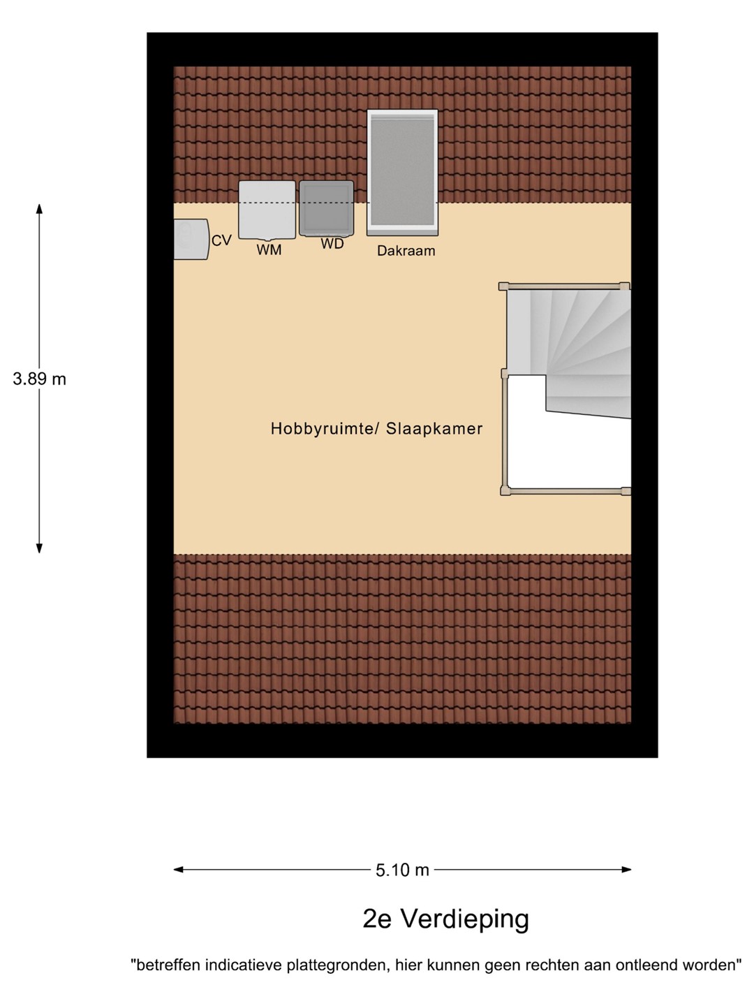Middels vaste trap te is de tweede verdieping te bereiken. Deze verdieping is ruim van opzet en bezit veel gebruiksmogelijkheden, denk aan een slaapkamer, thuiswerkplek of een sport/hobbyruimte. De technische installaties waaronder de opstelling van de CV, de MV-unit en aansluiting voor het witgoed zijn hier ook aanwezig. Onder de dakschuinte zijn praktische inbouwkasten gerealiseerd wat makkelijk is voor (extra) opslag.