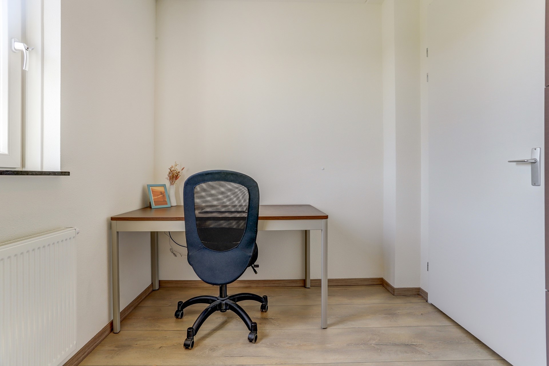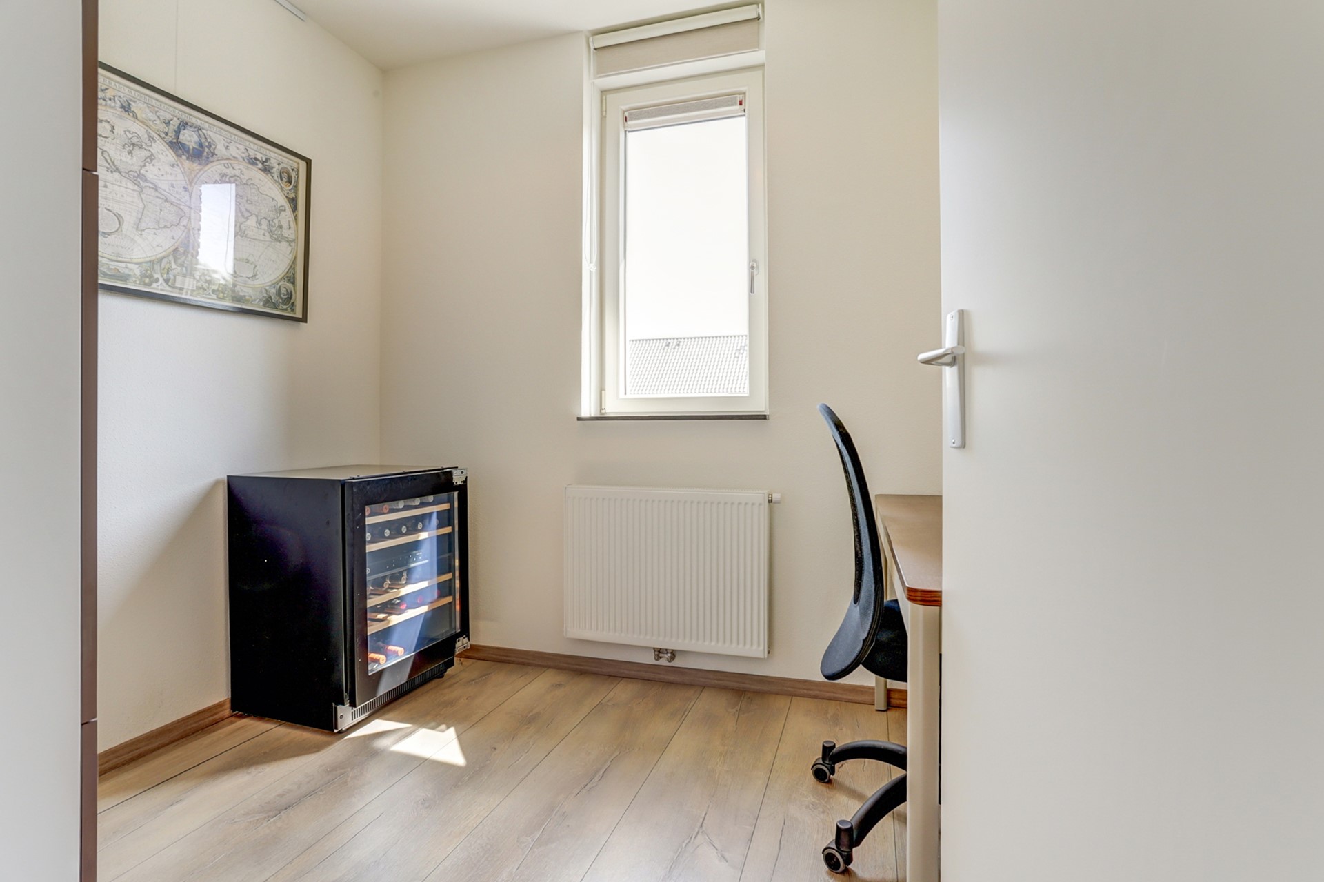 De masterbedroom is aan de achterzijde gelegen en is voorzien van een riante dakkapel met uitzicht in de achtertuin. Deze zeer royale kamer beschikt over genoeg ruimte voor een tweepersoonsbed en (vaste) kastenwand. Door de aanwezigheid van twee deuren is het hier ook mogelijk om een extra slaapkamer te creëren. De tweede slaapkamer is gelegen aan de voorzijde van de woning en wordt momenteel in gebruik genomen als werkkamer. Vanuit hier heeft u een fraai uitzicht! Alle slaapkamers zijn voorzien van kunststof kozijnen met draai-kiep functie.