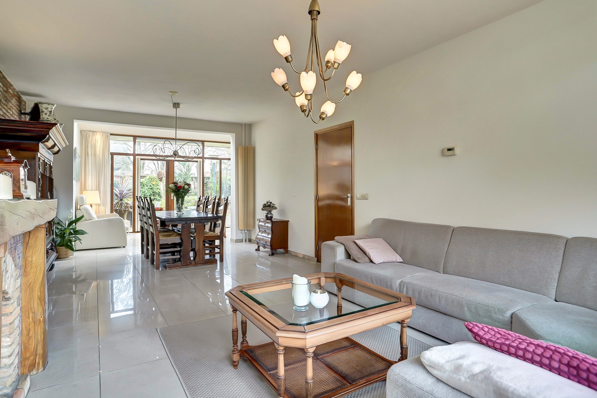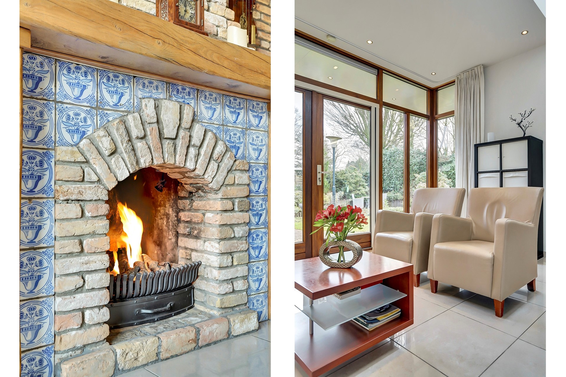 Vanuit de keuken is de woonkamer te bereiken. De woonkamer is met een diepte van ca. 11m royaal van opzet waardoor veel indelingen mogelijk zijn. De kamer is uitgevoerd met een prachtige tegelvloer, witte wand- en plafondafwerking. De kamer is ondanks de grootte ook erg knus en gezellig door de vele extra's. Ideaal om met de familie rond de gashaard te vertoeven of in de tweede zithoek aan de achterzijde van de fluitende vogeltjes in de tuin te genieten. De grote raampartijen en lichtstraat zorgen voor tenslotte veel daglichttoetreding waardoor de lampen elke dag pas laat aan hoeven.