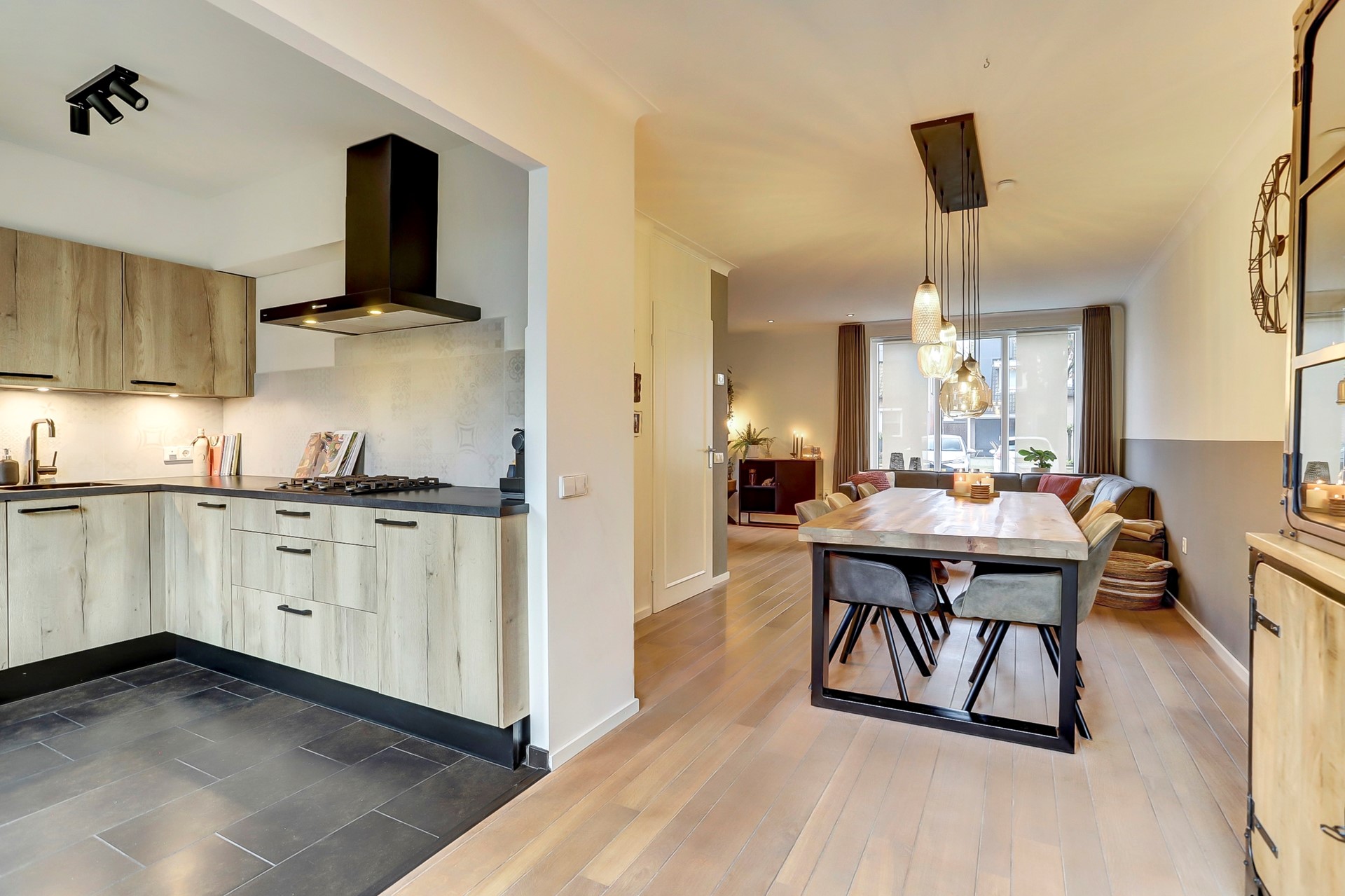 Doorlopend naar achteren is er volop ruimte voor een royale eettafel waarbij je via de openslaande tuindeuren (2023) in de zomer moeiteloos de tuin bij de leefruimte betrekt.