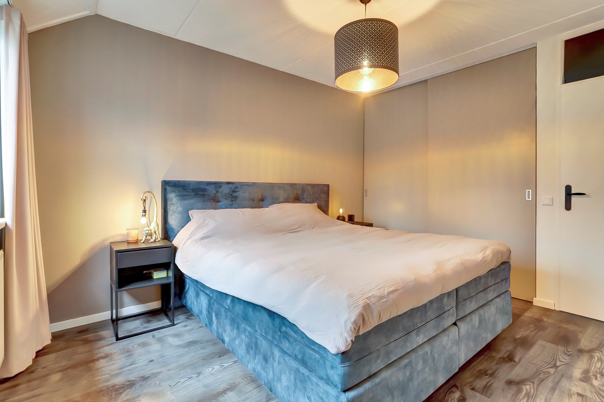 Twee slaapkamers zijn gelegen aan de voorzijde waarvan de masterbedroom zeer ruim van opzet is en beschikt over een grote raampartij met hor. Deze kamer biedt dan ook voldoende ruimte om een tweepersoonsbed te plaatsen, de kamer beschikt al over een functionele inbouw kledingkast. De tweede slaapkamer is wat smaller van opzet en daarmee ideaal als werkkamer of babykamer. De slaapkamer aan de achterzijde is eveneens ruim van opzet en biedt ruimte aan een tweepersoonsbed en een kledingkast. Deze kamer beschikt over een hardhouten dakkapel voorzien van rolluiken.