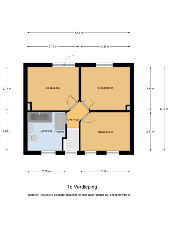 Via de vaste trapopgang bereik je de eerste etage van deze woning. Deze verdieping beschikt over drie royale slaapkamers en een ruime badkamer. De gehele verdieping is voorzien van rolluiken.
