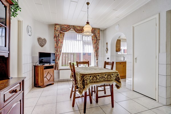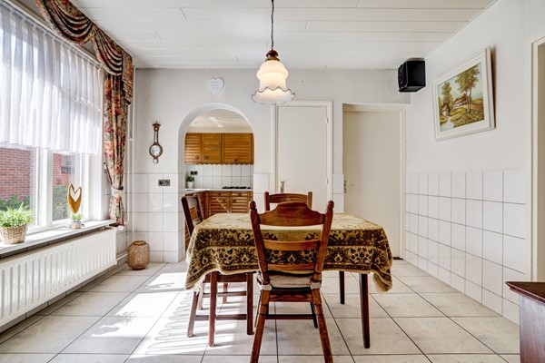 Welkom in de lichte eetkamer met open keuken. Er is voldoende ruimte voor een eettafel waar je fijn kunt dineren met het hele gezin. Ook beschikt deze ruimte over een handige inbouwkast, ideaal voor het opbergen van je voorraad en zijn alle ramen in de keuken voorzien van rolluiken.