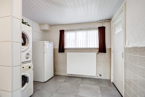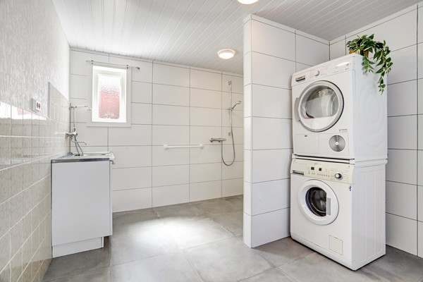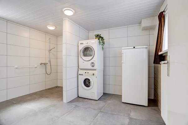 De bijkeuken is de afgelopen jaren onder handen genomen en dat is dan ook terug te zien. Deze ruimte beschikt over een royale inloopdouche en een handige spoelbak met mengkraan. Ook bevinden zich hier de witgoedaansluitingen en is er nog ruimte om een extra koelkast en/of diepvries te plaatsen.