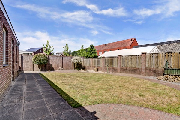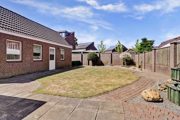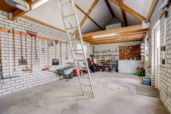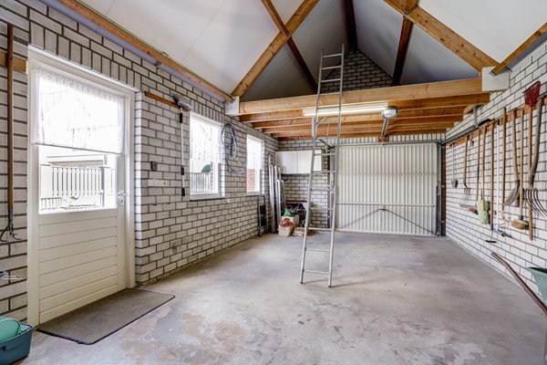 De achtertuin is royaal van opzet en beschikt over een gazon en bestrating. Een degelijke ruime garage maakt deze tuin helemaal af! Via de oprit kun je je auto gemakkelijk in de garage parkeren, die is voorzien van een elektrische garagedeur. Als handige klusser kun je hier perfect vooruit.