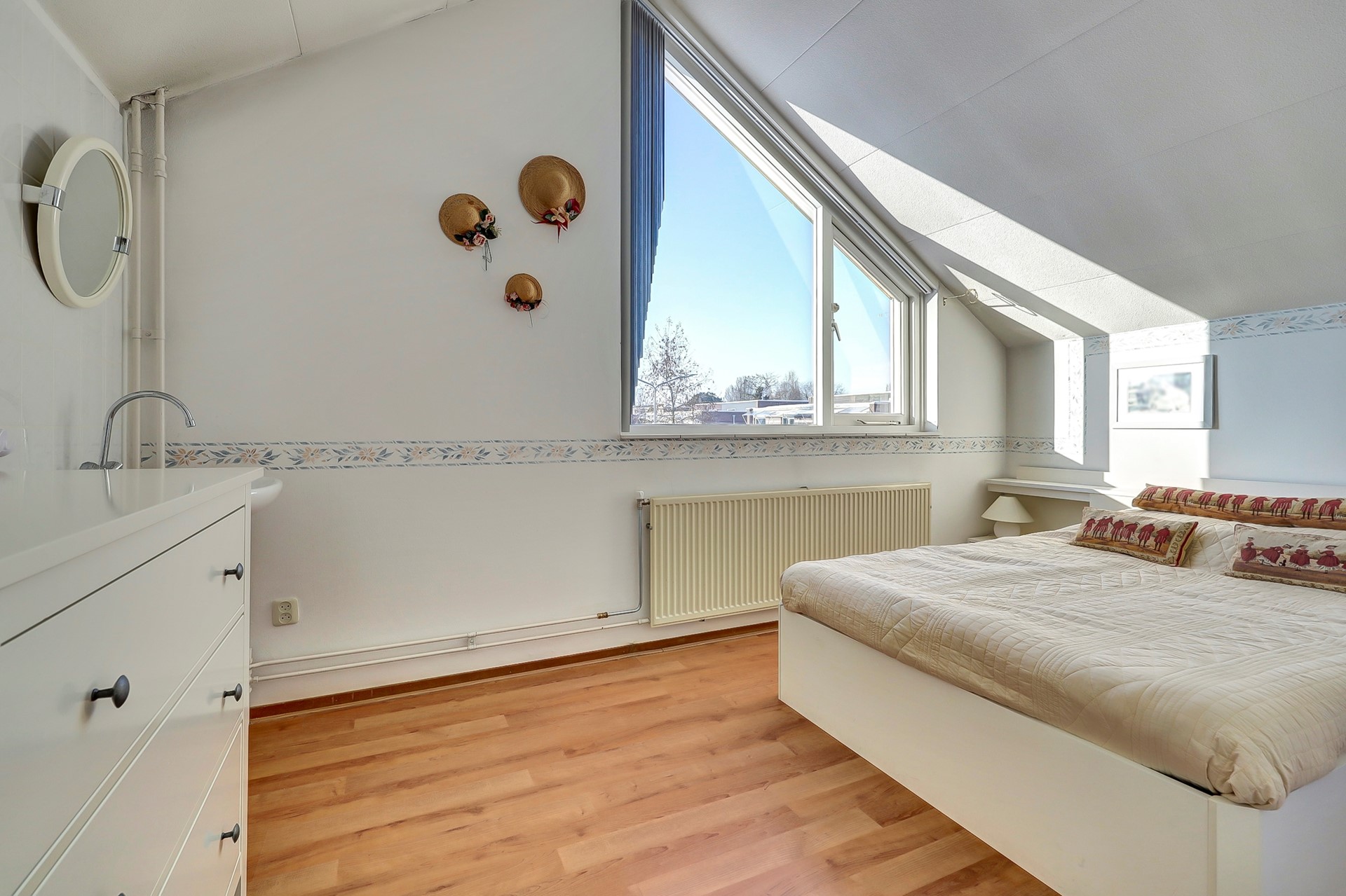 De slaapkamer is praktisch in te delen en biedt ruimschoots plaats aan een groot tweepersoonsbed en een royale kledingkast. Dankzij de grote raampartijen valt ook hier prettig veel daglicht naar binnen. En voor extra comfort is de ruimte voorzien van automatische zonwering, zodat je het binnenklimaat altijd aangenaam houdt.